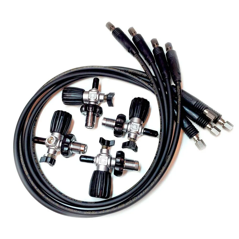 The panel is supplied with the main hose, the 4 filling hoses and its DIN terminals.