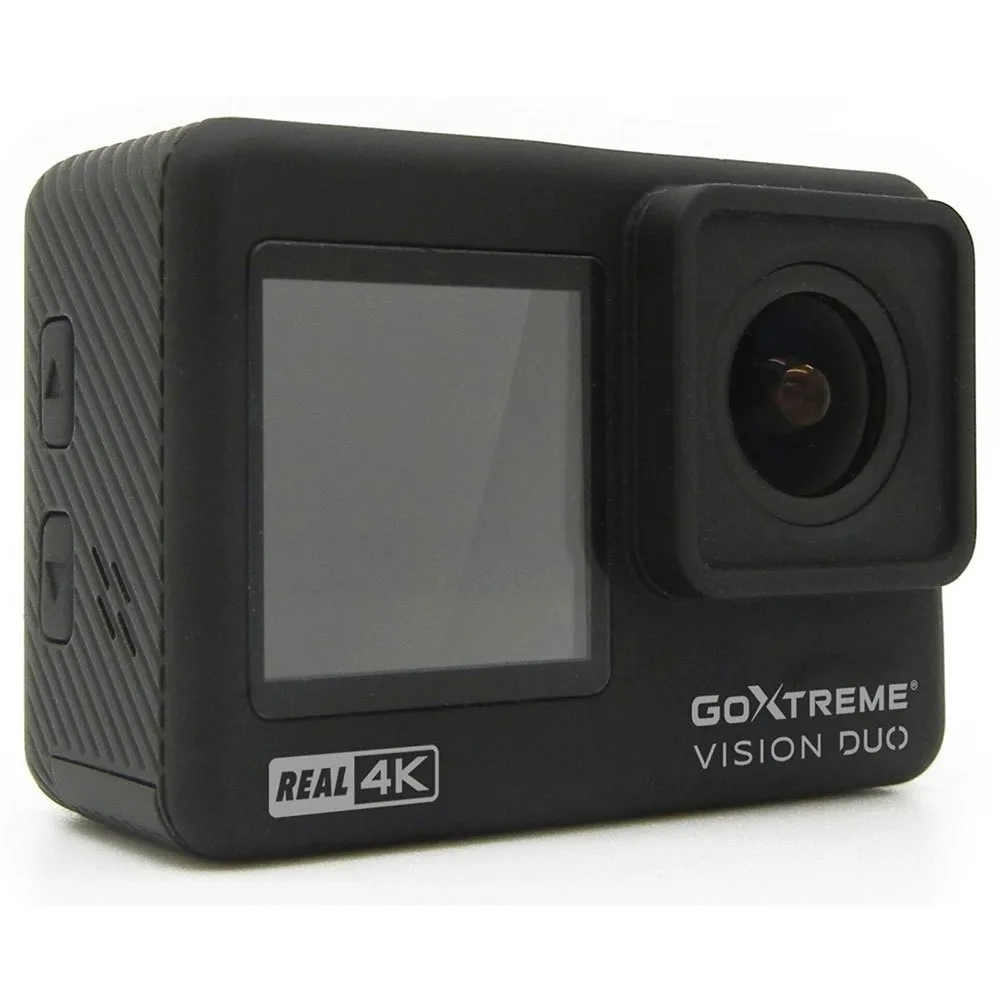 Black The EASYPIX GoXtreme Vision Duo 4K Action Camera is a top-of-the-line photo-video camera for adventurous individuals who want to capture their experiences in stunning detail. With its 4K resolution, this camera offers crisp and clear images that truly capture the essence of your adventures. The black color adds a sleek and modern touch to the design. This camera is perfect for anyone who enjoys snorkeling, skydiving, or any other exhilarating activity. It is easy to use and comes with a variety of versatile features including a waterproof casing that can be used up to 30 meters deep, a remote control to take photos wirelessly, and a strong suction mount for easy attachment to any surface. The EASYPIX GoXtreme Vision Duo 4K Action Camera is the ideal tool for anyone in need of a reliable and high-quality camera to record all of their exciting moments.