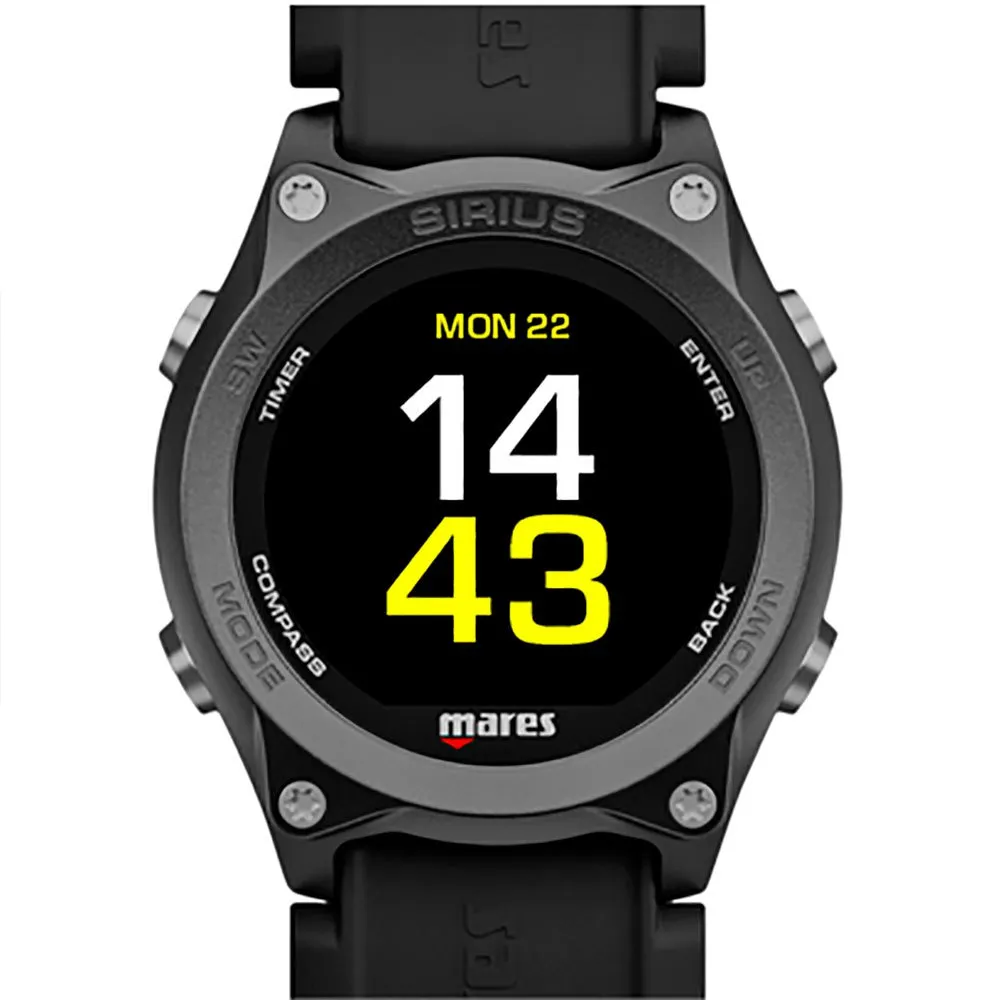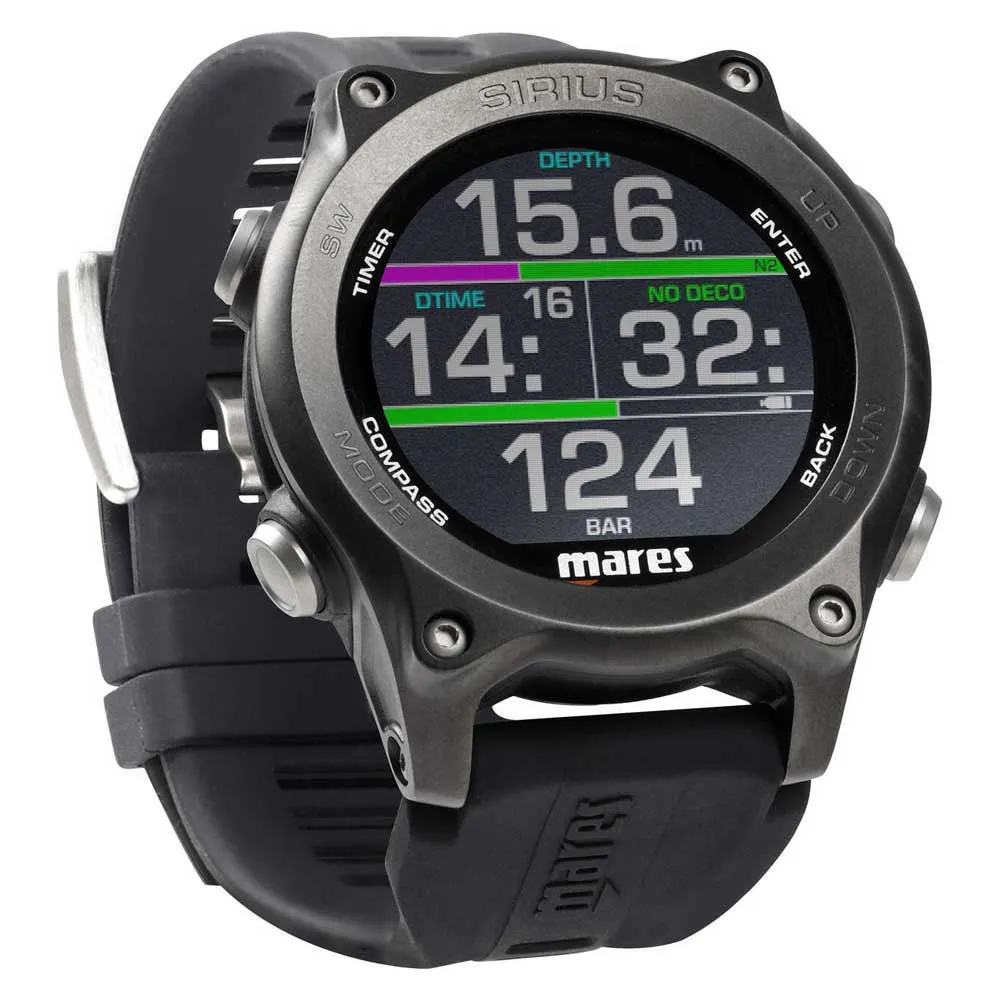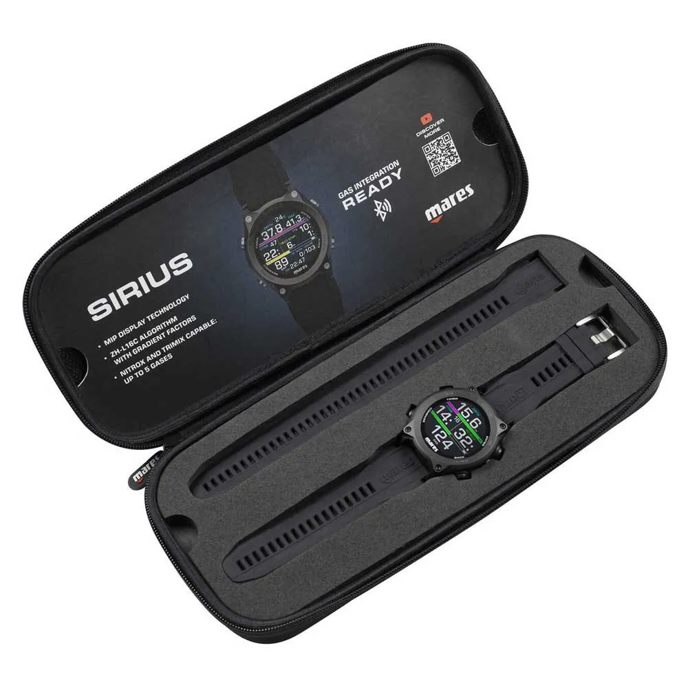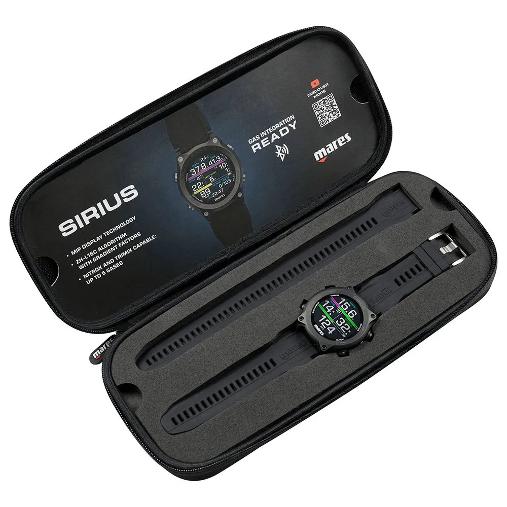 Mares Designed The New Sirius Watch-Style Dive Computer With The Aim Of Perfectly Combining Technology And Elegance. The Characteristics Of This Dive Computer Feature Top-Of-The-Range Technology Both For The Recreational And Extended Range Divers. The Recreational Diver Can See A Simple Screen, With The Possibility Of Reading Tank Data Thanks To The Optional Tank Module. The Extended Range Diver Can Insert Up To Five Nitrox And Trimix Mixes To Manage Technical Dives. The Interchangeable Strap Allows The Extended Range Diver To Use Any Suit Thickness. Its Refined Style Makes The Sirius The Perfect Accessory, Even Out Of The Water. Available In Black Or Black/Silver Versions.